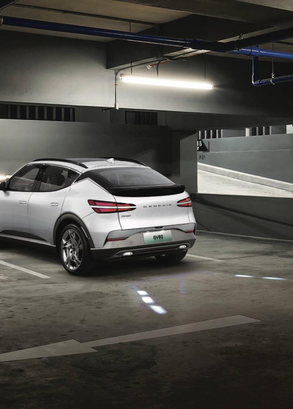 最有意思的是它的倒车指示灯,倒车时,GV60 能够将倒车指示灯照射在地面上,提醒了后方行人的同时,也方便驾驶员估测距离。