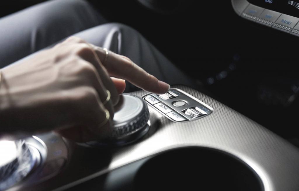 最引人瞩目的还是副仪表台上的发光小球,实际上那是用来换挡的,捷尼赛思管它叫「水晶球式换挡」。