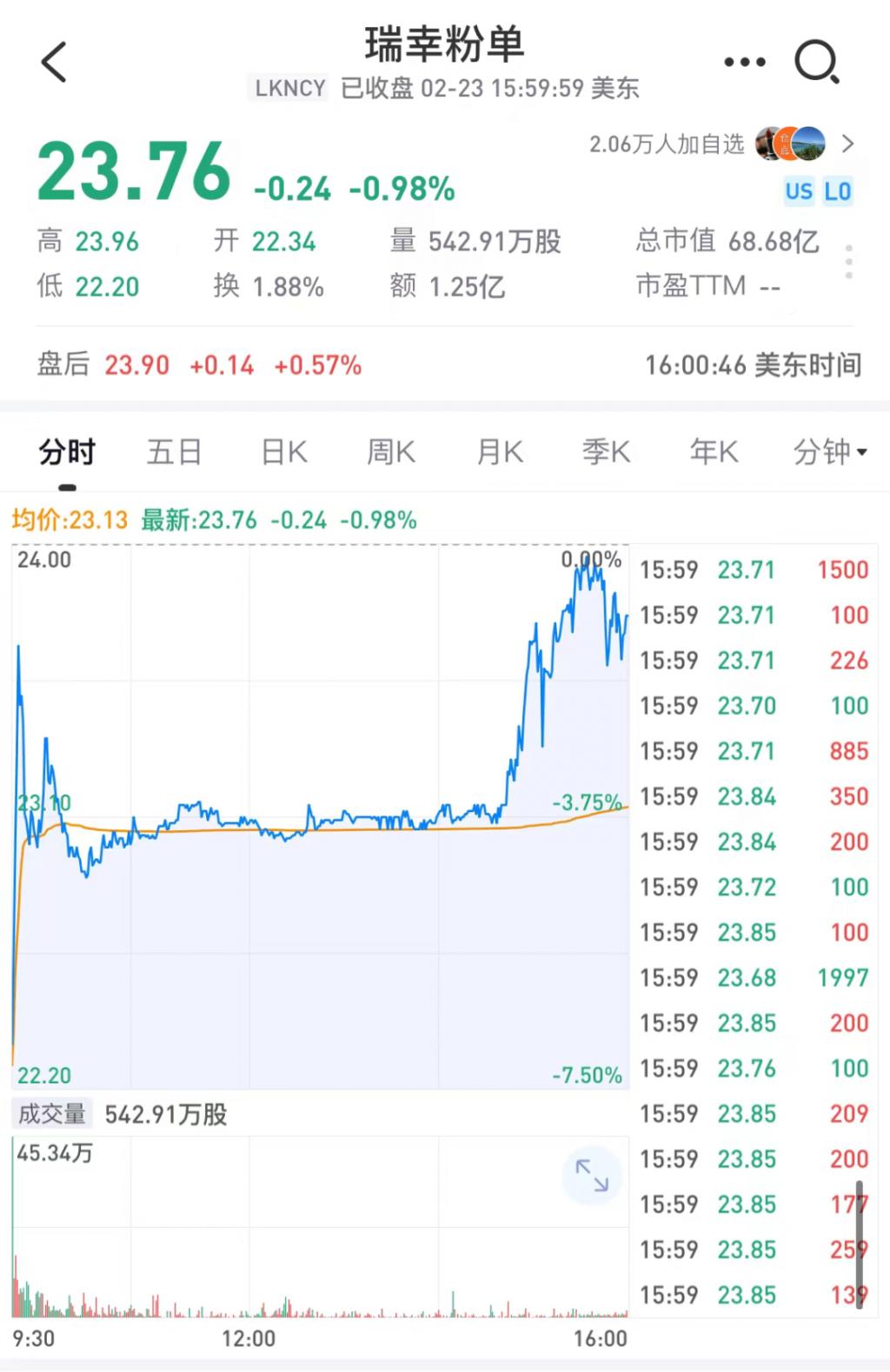 市场对于瑞幸的预判也不够乐观,近几个月来,瑞幸的股价一直呈下降趋势,截至 2 月 23 日收盘,报每股 23.76 美元。瑞幸市值较去年 10 月 11 日 103.3 亿美元的高点,缩水了三成以上。
