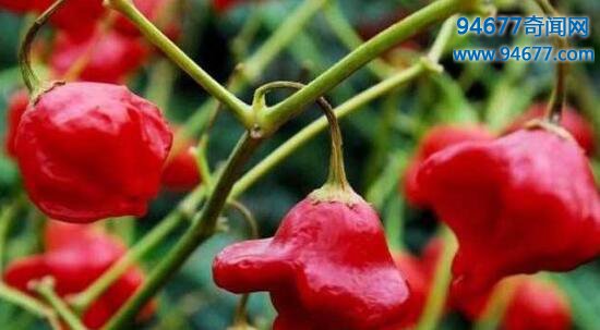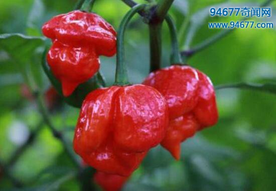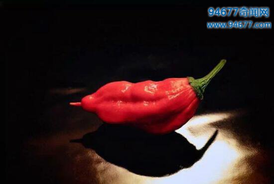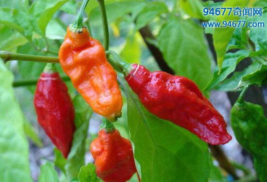 该辣椒是世界上最辣的辣椒,又名“地狱之火”,普通人的嘴唇只要碰一下它的断面,马上就会肿起来。