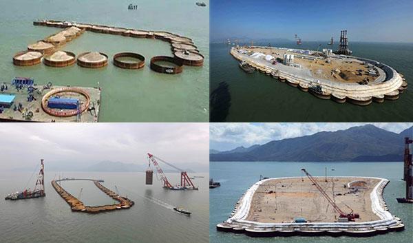 隧道和桥梁连接,隧道和陆地连接,还有几个人工岛的建设,以港珠澳大桥东人工岛为例,介绍一下一种典型的建岛过程。