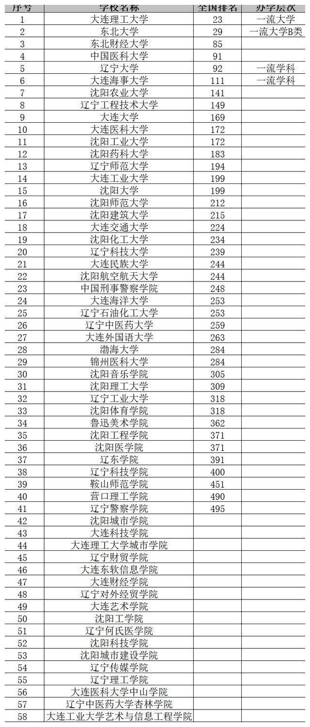辽宁省实际普通本科数量60所。排名最高的是大连理工大学。