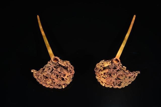 镂空祥云飞龙戏珠镶宝石簪。武汉博物馆 供图
