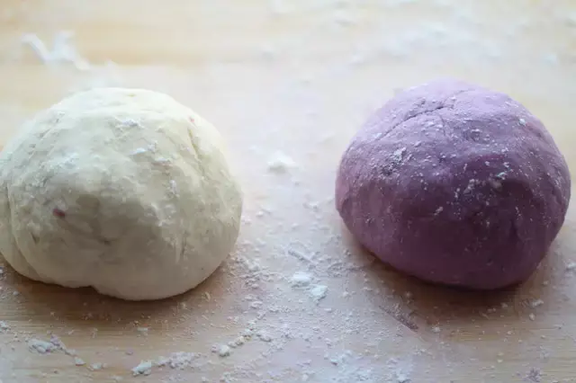 滤出紫色的水,用来和面,就得到紫色面团啦。