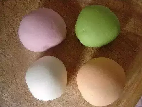 1.首先按照前面所说的方法,准备好几种纯色的面团。