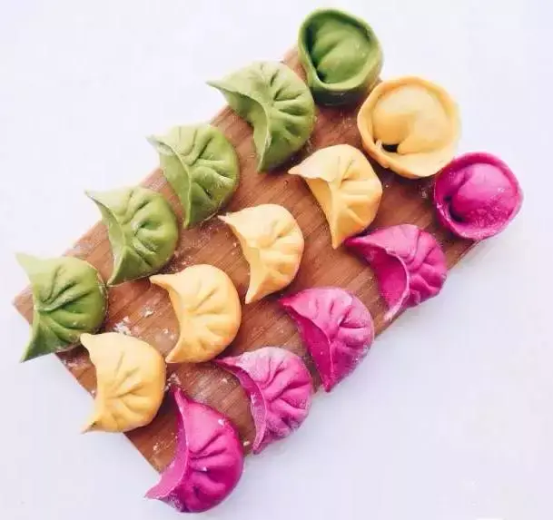颜色缤纷的饺子为节日增添了不少欢乐气氛呢,大人小孩都喜欢~
