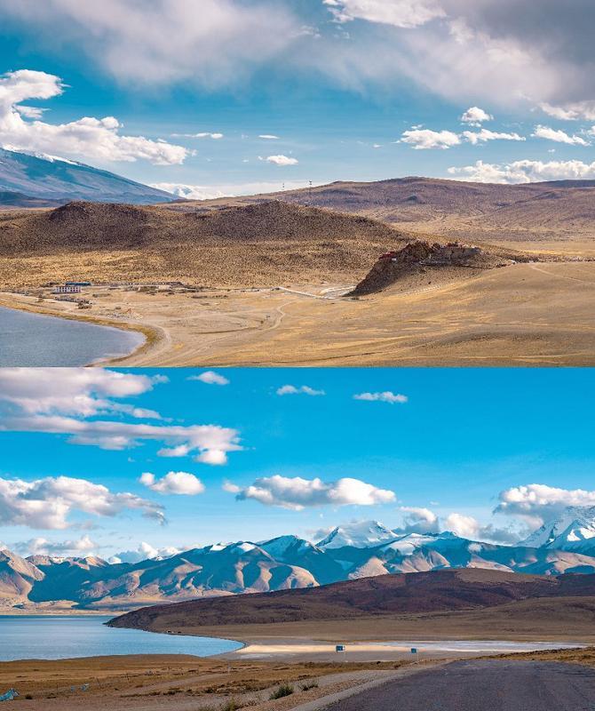 在他旁边还有一个咸水湖叫拉昂措,与淡水的圣湖一路相隔,为微咸水湖,因此其湖水人畜皆不能饮用,所以人称鬼湖,她风光同样美丽,湖水同样是蓝得心醉。