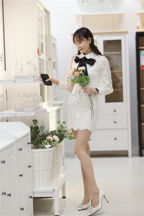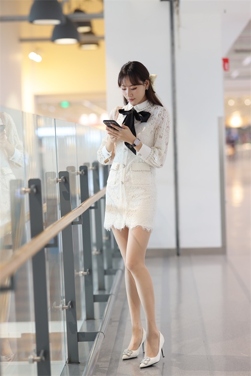 漂亮的白色蕾丝连衣包臀裙-高跟美腿小姐姐