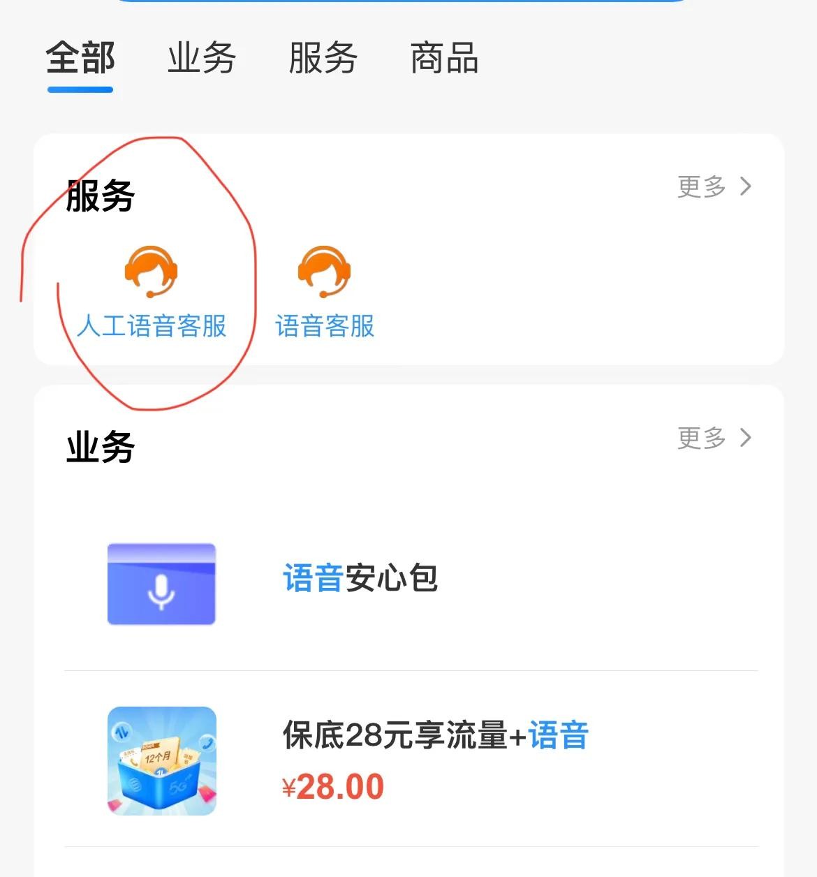登陆中国移动APP,首页顶上面搜索栏输入“人工语音客服”,