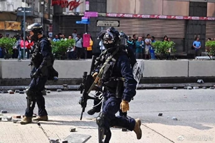 在暴徒使用弓箭这种远距离杀伤性武器后,有港媒照片显示,警察开始携带射程更远的自动步枪,之前携带实弹的是警用左轮手枪。