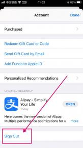 3. 向下滚动页面,找到页面最底部的“退出(Apple ID)”,并点击。