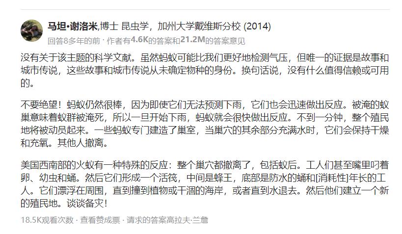 在外网能就发现,外国网友对这个话题也很感兴趣,比如有人提问:“蚂蚁能在下雨之前发现它吗?”