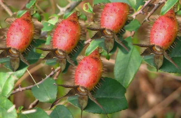 金樱子在当时对于农村娃来说可是很稀罕的一种野果,许多的小孩子到了秋季金樱子成熟的时候,都会提着篮子、带着剪刀去采摘。因为金樱子这种野果,不光是果实上长满了尖刺,而且植株上也有很多又坚又硬的刺,不仅会划烂我们的衣服,而且采摘的时候不小心还会划伤皮肤,一划就是一条长长的伤口,所以采摘的时候需要格外的小心。
