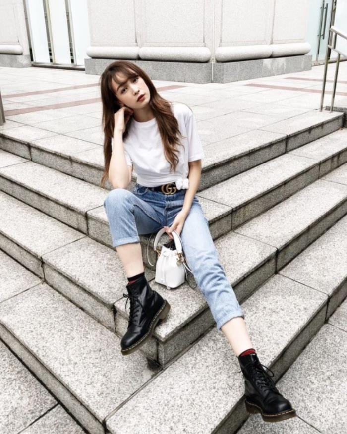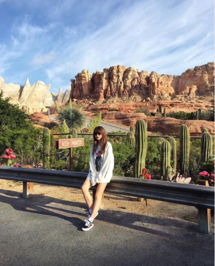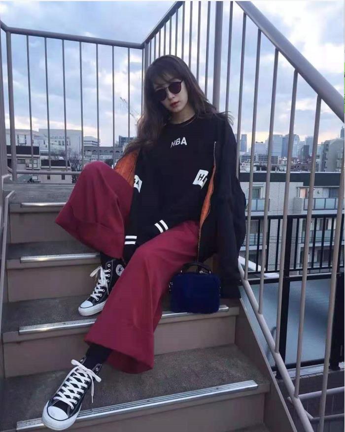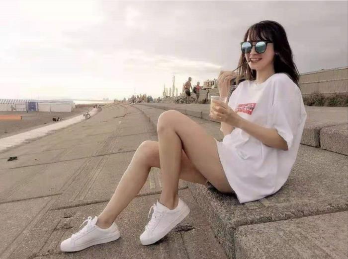 作为模特的美腿又白又直,拍照姿势也又酷又飒。