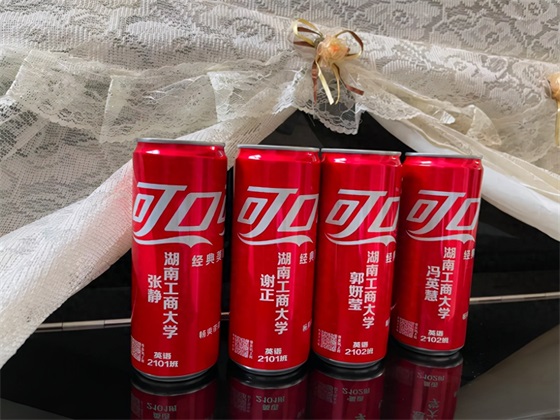 为了让新生消散秋日的余热,感受热情似火的大学生活,湖南工商大学还专门为萌新们订制了专属可乐。红彤彤的瓶身上,印刻着每一位新生的名字,仪式感满满。将学子永放于心间,这瓶专属的可乐饮料,正如学校贯彻的“三个一切”理念,把学生看得比什么都重。这些可乐也蕴含着学校的一份祝愿,愿新生们在学校的生活能事事可乐,学业可以蒸蒸日上。