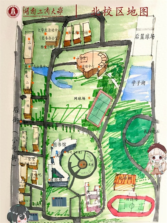 为了让2025级新生们能更快速地熟悉校园,湖南工商大学特意制作了南北校区手绘地图,作为一份礼物,助力各位新生乘风破浪,披荆斩棘。