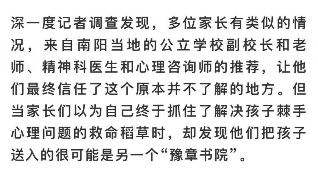 毕竟," 矫正 " 的名目是如此庞杂,从最基础的戒网瘾,到戒酒、戒毒乃至治疗自闭症、抑郁症、社交障碍,几乎任何一个孩子都能轻易对号入座。