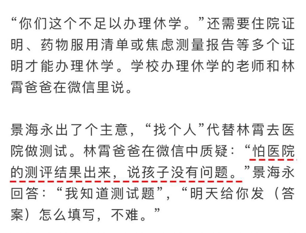 河南一位受害者的家长,当时为了给孩子办休学,与机构一同伪造了一份精神疾病诊断。