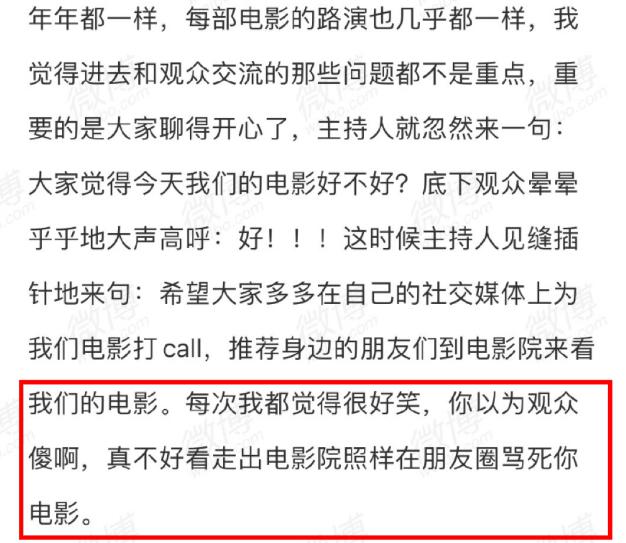 说到底,一部电影的好坏,根本不需要通过这些利益相关的业内人士的 " 表演 " 来强化观众的认知。