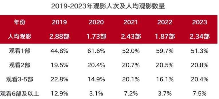 根据猫眼对 2023 年的数据统计,一年看 6 部以上的影迷,是正在逐渐流失的。