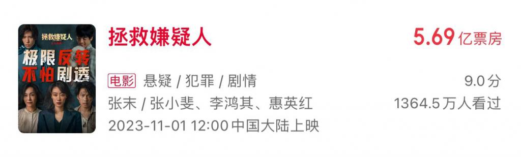 《拯救嫌疑人》学得小成,斩获票房 5 亿 +