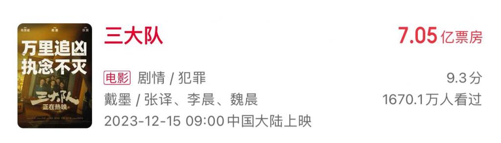 《三大队》弱化了悬疑强化了人物,不瞎反转,还把背景落回了内地,结果攒来张译也才 7 个亿。