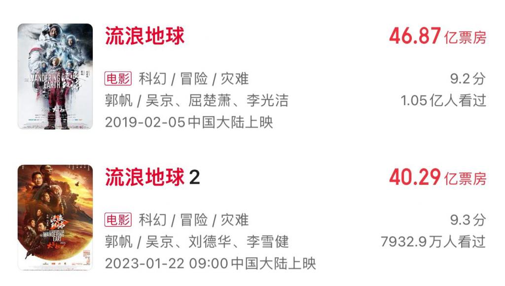 郭帆的科幻,两部合起来 85 亿 +,但目前尚无非《流浪地球》IP 的例证,很难判断下个 IP 还能不能灵。