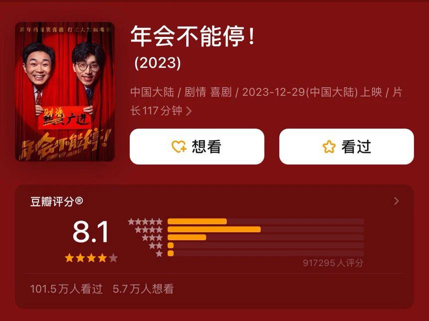 演社畜心酸的《年会不能停》有 12 亿,但左顾右盼,尚无同类。
