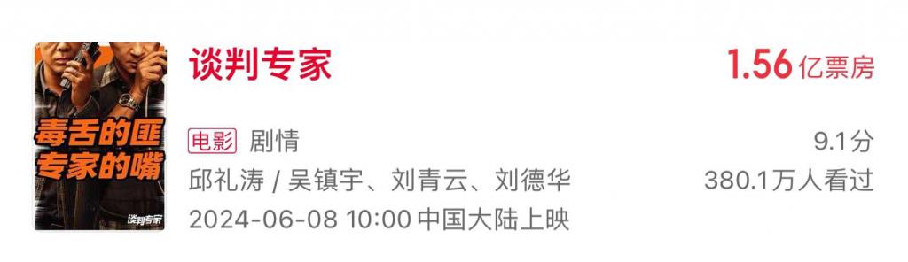 港片也是越来越不灵,几年前名字带个 " 战 "" 行动 "" 毒 "" 赌 "+ 一干香港老牌明星就能在内地卖 5 到 10 亿的好日子已一去不复返。2024 年港片最高票房 6.84 亿的《九龙城寨》带着浓郁二次元漫改风,可算是非典型港片,而口碑大好影帝领衔的《谈判专家》不过 1.5 亿。