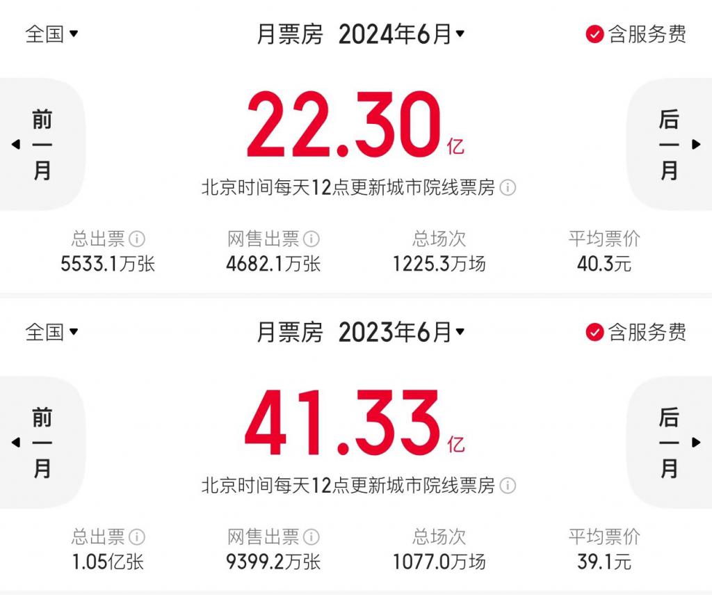 进入 7 月前,半死不活的暑期档在整个六月才拿下 22.3 亿票房。