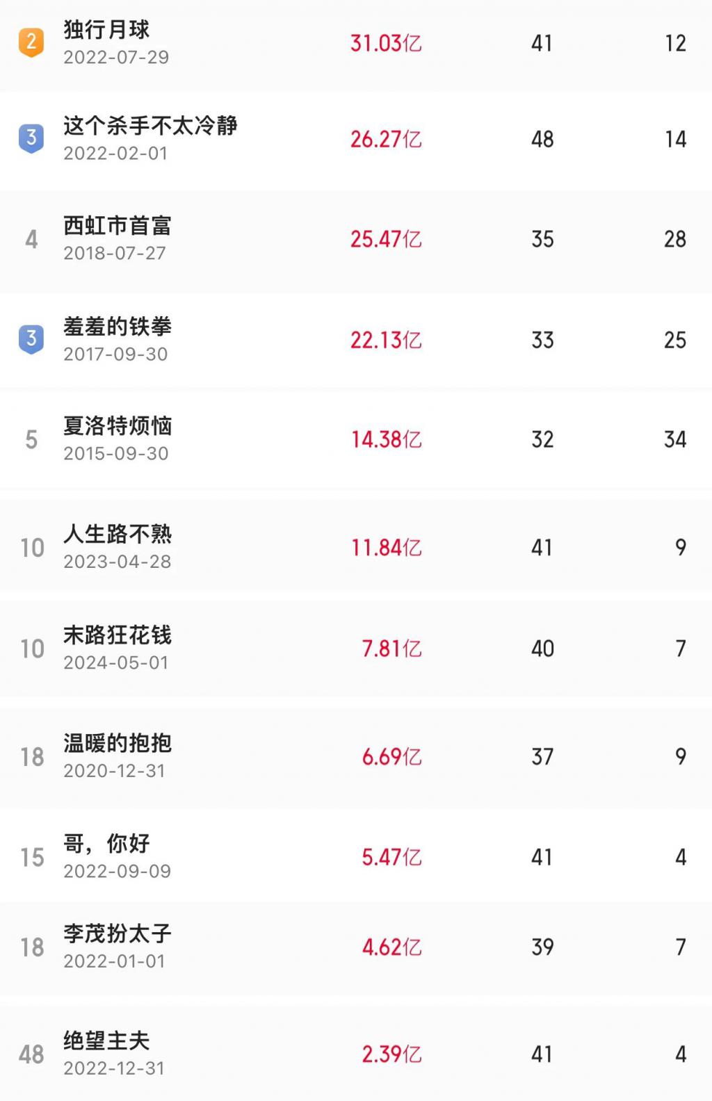 所以你看,那些有可能灵的电影类型,不是 " 高成本高壁垒 ",就是无法复制的个人 IP,要么就是只看见贼吃没看见贼挨打的十不存一,唯一低成本、低明星需求的爱情电影也失效在即。