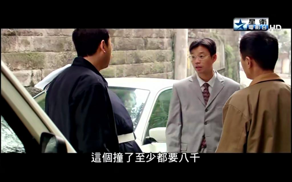 宝马车主四眼(王迅饰)向包世宏索赔 8000 块。