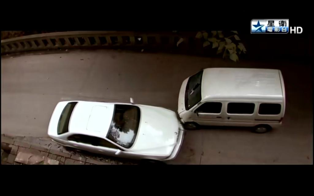 包世宏(郭涛饰)开车,挡风玻璃被可乐瓶砸碎,他下来查看,车子没刹好,撞上一辆宝马车(正是前文提到的那辆)。