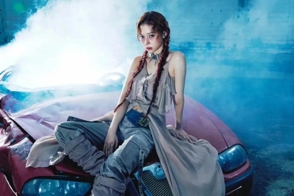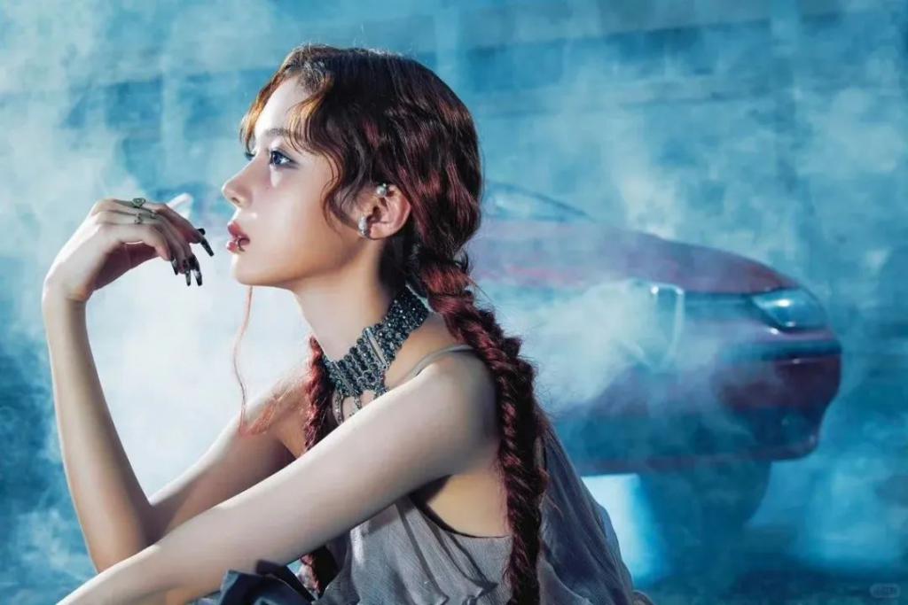 aespa专辑《drama》winter的预告照,破碎的裙摆盖住了工装裤和皮靴,戴着手工痕迹很重的首饰,精致的颓废感泛起。