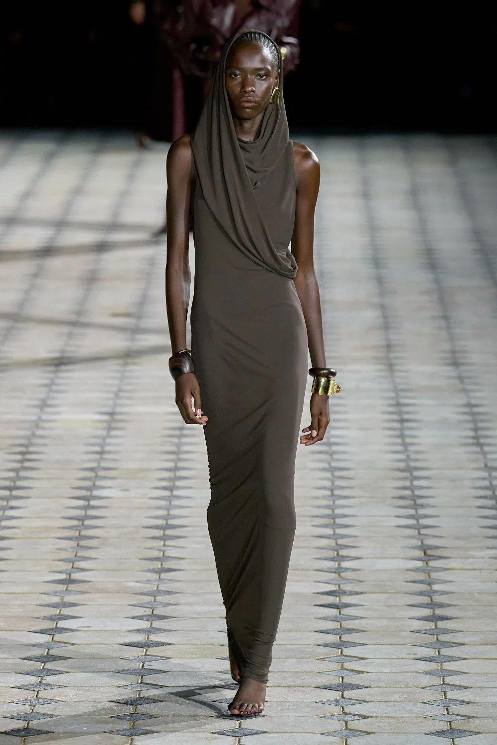 灵感来源于YSL在80年代中期的设计,带有异国情调的兜帽 ,2023春夏系列也是以此来进行的拓展。