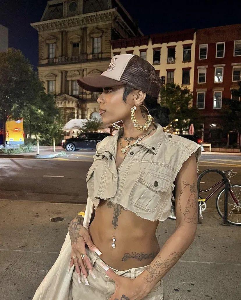 最显眼的就是Jennie这套兜帽造型,简简单单地摘帽子就能给人强烈地颤栗感,就像是荒漠里唯一亮着的神,又或是废土时代最后一位活下来的刺客。