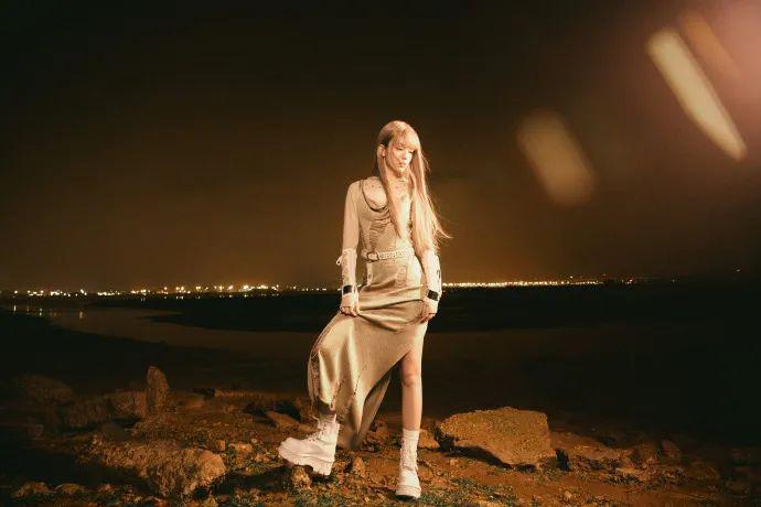 虞书欣上身的露背废土沙丘风裙子,增添了甜辣之余的冷酷感,也符合"女战士"的概念表达。