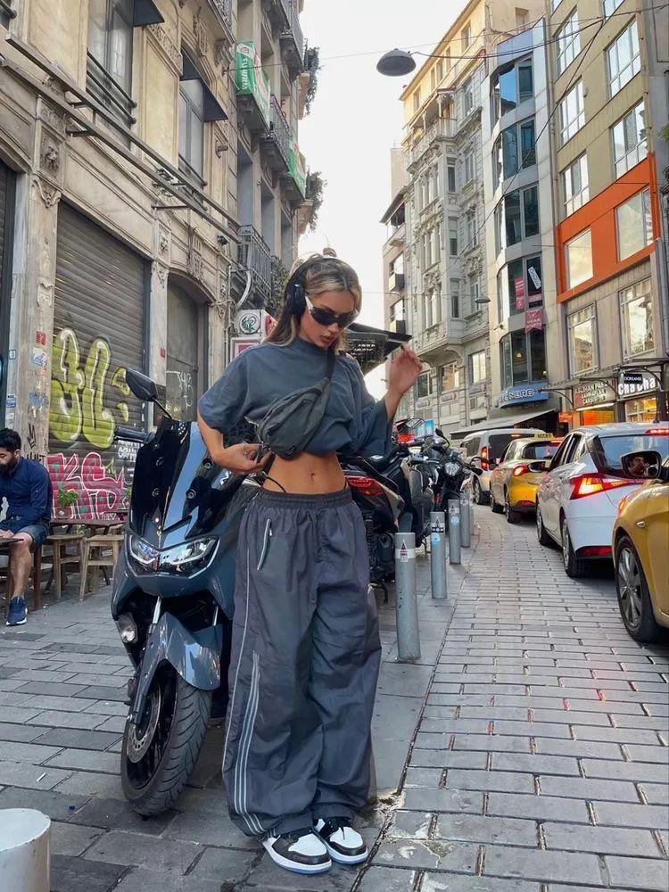 运动女孩们也可以选择大廓形的运动裤,灵活性和舒适度自是不用说,搭配露脐T恤可以减弱臃肿感。