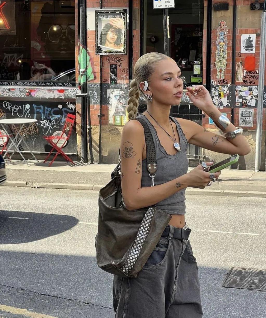 这样看来废土风其实一直都很火,但生活中却很少看到,因为搭配不好的话就会看起来"脏脏旧旧"的,主要把握好下面几个方面就能再日常拥有"轻"废土风。