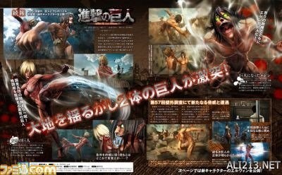 Koei Tecmo在本周的Famitsu中透露,泰坦(巨人)形态的艾伦·耶格尔以及女性泰坦将会出现在由Omega Force开发的《进击的巨人(Attack on Titan)》游戏中。