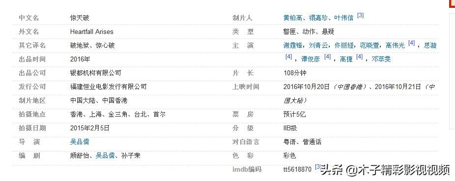 《惊天破》是由银都机构有限公司、福建恒业影业、广州长长影视文化传媒联合出品的悬疑警匪动作片,该片由吴品儒执导并兼任编剧,谢霆锋、刘青云、佟丽娅、范晓萱、高伟光主演。该片讲述了马进在一次行动中击毙恐怖分子,并由此引发出一连串奇巧曲折的故事。影片于2016年10月21日在中国内地上映。