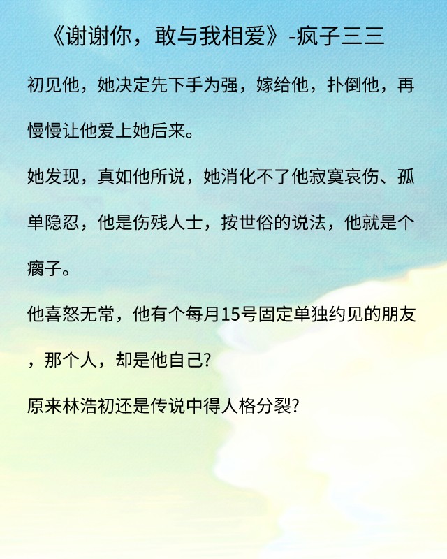 看小说,除了看剧情,更要看男女主角的人设,男主双重人格的作品并不少,如时矜《第九行诗》。