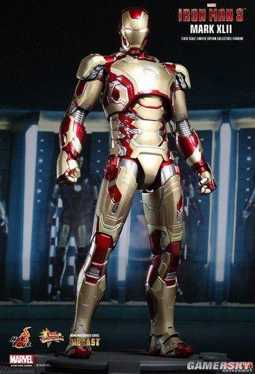钢铁侠最为花哨的一款机甲,采用的是土豪金和红色的配色,十分华丽。他的优点是远程操控和自动组装。区别于其他战甲,马克42每一部分都能听从托尼的召唤。