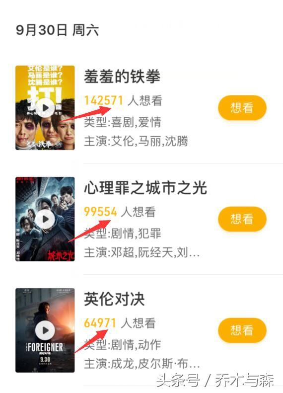 因为在国庆档,甄子丹刘德华的《追龙》,成龙,007布鲁斯南《英伦对决》,沈腾马丽的《羞羞的铁拳》,大鹏乔杉的《缝纫机乐队》都算是强有力的竞争者。其中《空天猎》热度似乎不高。