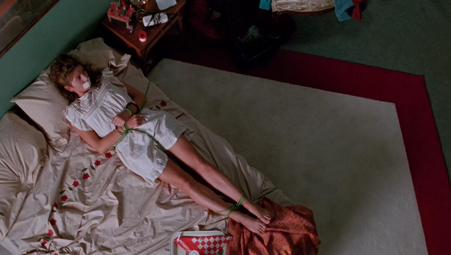 但是男主是真心的爱着她的,于是马上就告诉了玛丽安说你不要害怕,我绑架你是因为我爱你,是为了让你可以更好更快的了解我,你了解了我,你就会爱上我。小编觉得这个逻辑绝对没有错。于是,逻辑没有错的事情一般都会成功,玛丽安整天被绑在床上,但是玛丽安渐渐了解了他,然后最后还爱上了他。