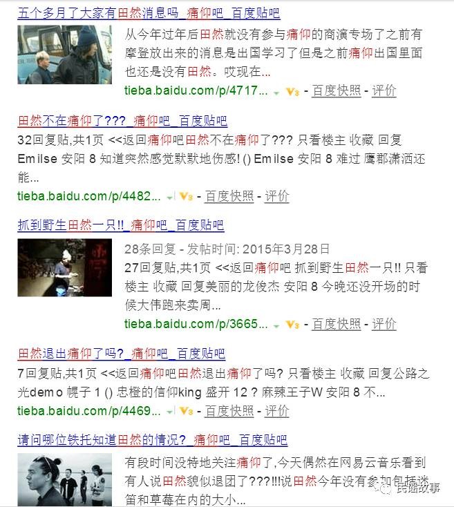 百度贴吧关于痛仰田然的话题,都是关于他个人的去向和近况。