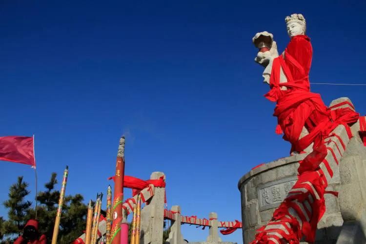海神娘娘手举神灯面朝大海面容慈祥。