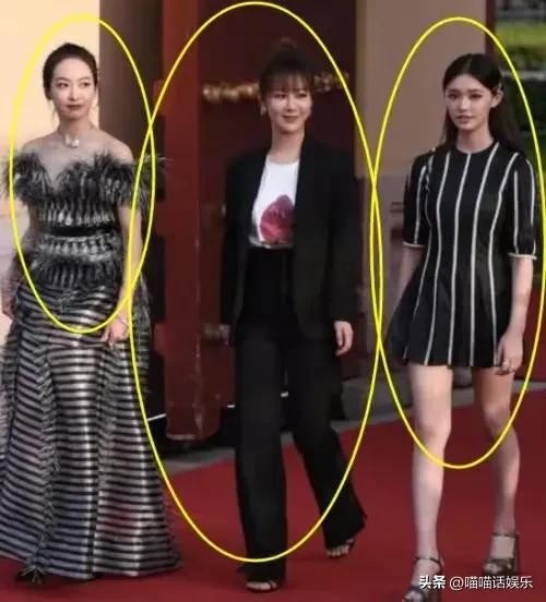另外,如果身高不够,也根本不可能敢在红毯上放弃高跟鞋。比如鞠婧祎,她甚至从来不会让人看到她的鞋子有多高。