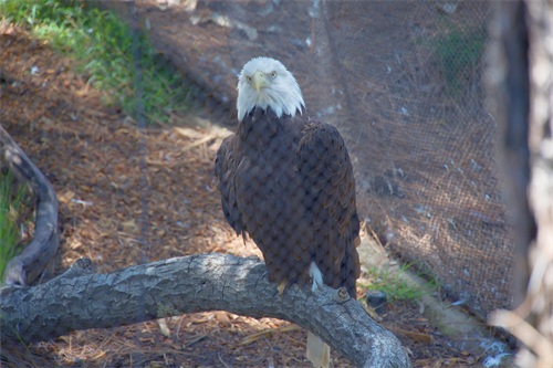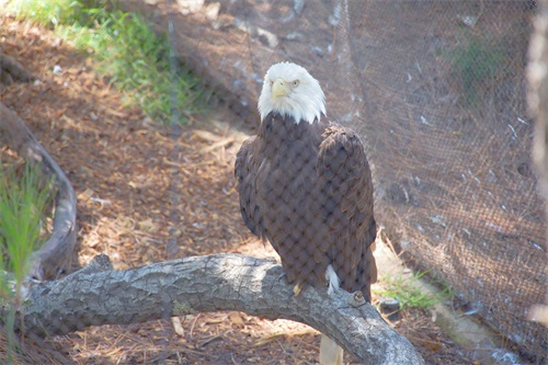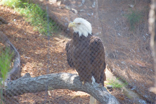 总的来说,白头鹰是一种非常独特和美丽的动物。它们的强大飞行能力和食肉习性让人们不禁想要更深入地了解它们。这不,一只白头鹰就被抓来关了起来,供人们观赏,你看它那凶恶骄傲的模样,显然对被关进笼子里面很不满。