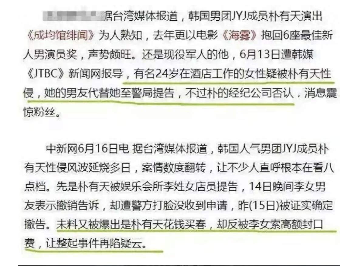 与此同时,朴有天2014年被指控性侵她人一事再次卷土重来,从朴有天晒出的简笔画中发现了一些细节,这一点和指控女子的控诉内容不谋而合,朴有天还被曝出同时交往50多人的离谱大瓜。